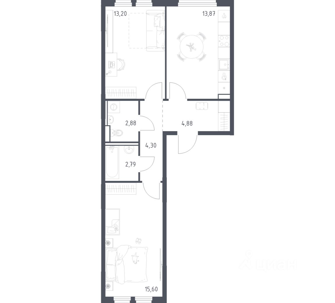 А если не хочется тратить время на ремонт, можно выбрать опцию — с отделкой. Перед тем как отдать ключи, застройщик установит натяжные потолки, поклеит обои под покраску, положит ламинат светлых тонов, а в санузлах — керамическую плитку и керамогранит.
