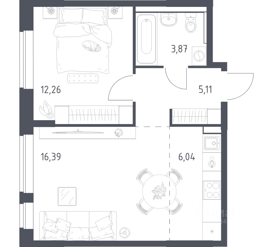 Строим кварталы для жизни с заботой о будущем. Предлагается 1-комнатная квартира комфорт-класса площадью 43,67 кв.м в корпусе 14.1 на 12-м этаже, в жилом комплексе "Пригород Лесное".