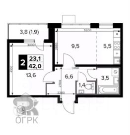 Представляем к продаже светлую и уютную квартиру площадью 42 кв. м в современном жилом комплексе в деревне Сапроново.