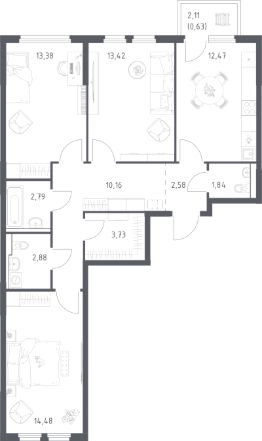 Продаётся 3-комнатная квартира в строящемся доме (Корпус 19), срок сдачи: II-кв. 2026, общей площадью 78.36 кв.м., на 3 этаже. "Пригород. Лесное" возводится в экологически чистом районе в 4 км от МКАД на берегу реки Людовна вблизи города Видное.