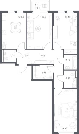 Продаётся 3-комнатная квартира в строящемся доме (Корпус 19), срок сдачи: II-кв. 2026, общей площадью 79.01 кв.м., на 3 этаже. "Пригород. Лесное" возводится в экологически чистом районе в 4 км от МКАД на берегу реки Людовна вблизи города Видное.