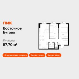 Продаётся 2-комн. квартира площадью 57,7 кв.м на 10 этаже 17 этажного дома (Корпус 48, Секция 2) проекта ПИК Восточное Бутово. Светлый просторный подъезд на уровне земли, функциональная планировка, большие окна, предчистовая отделка.