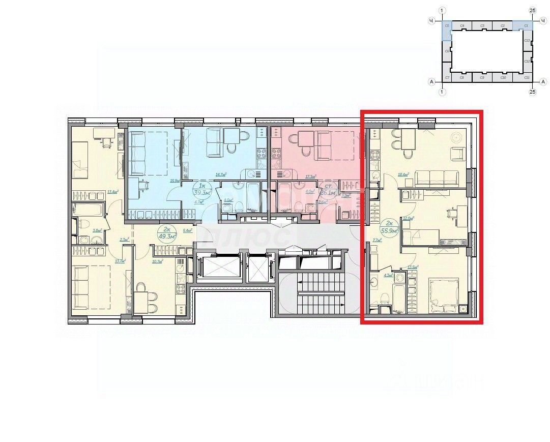 Сама квартира расположена на комфортном 8 этаже, с удачной планировкой-евро 3-х комнатная: просторная кухня (18,4м2), полностью оборудованная необходимой мебелью и бытовой техникой и 2 изолированные комнаты.