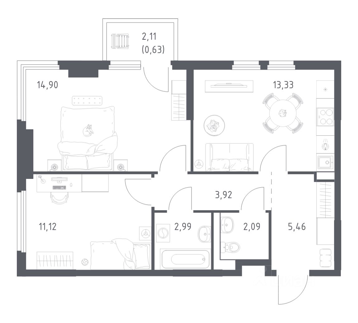 Строим кварталы для жизни с заботой о будущем. Предлагается 2-комнатная квартира комфорт-класса площадью 54,44 кв.м в корпусе 19 на 5-м этаже, в жилом комплексе "Пригород Лесное".