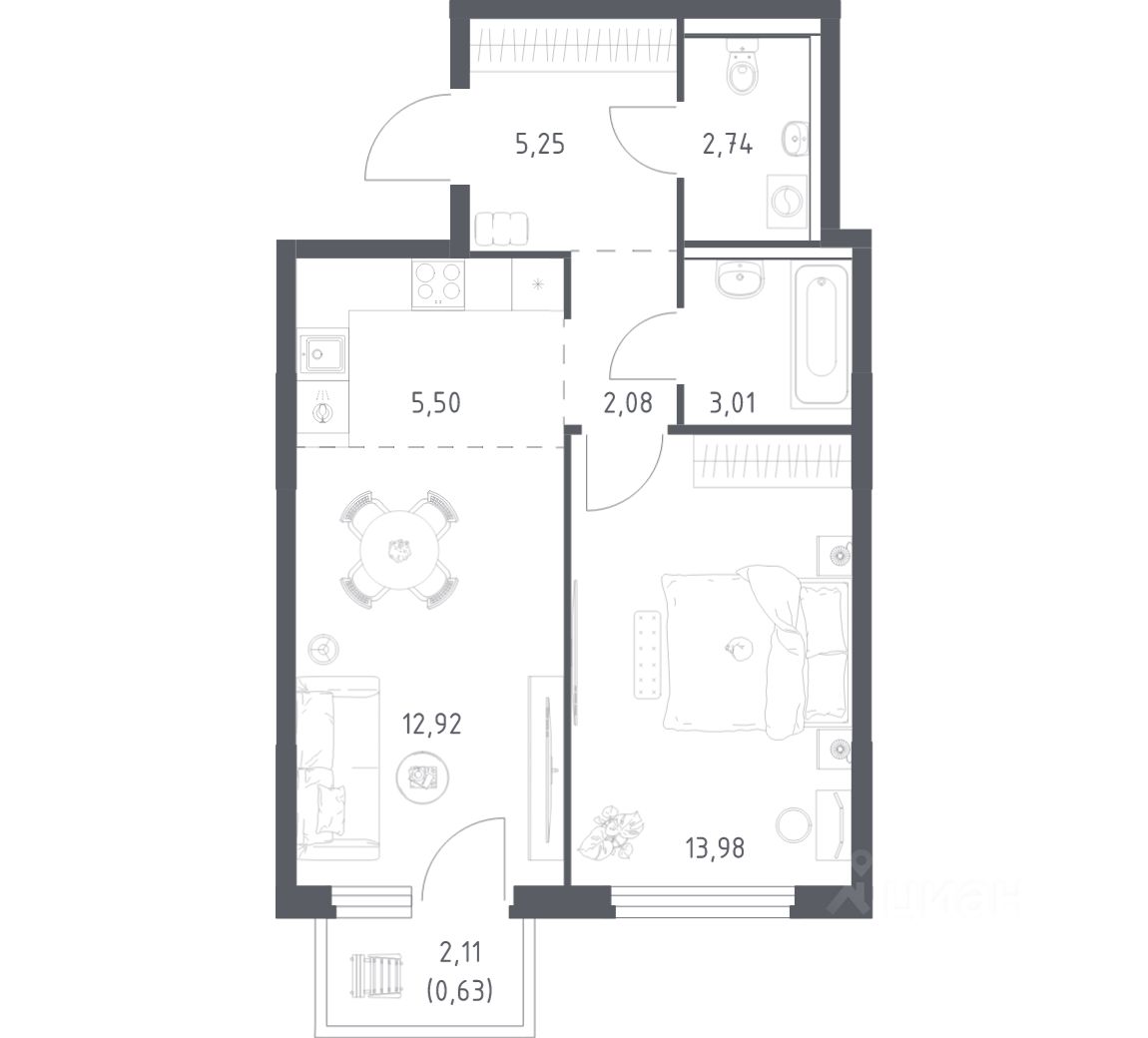 Строим кварталы для жизни с заботой о будущем. Предлагается 1-комнатная квартира комфорт-класса площадью 46,11 кв.м в корпусе 20 на 10-м этаже, в жилом комплексе "Пригород Лесное".