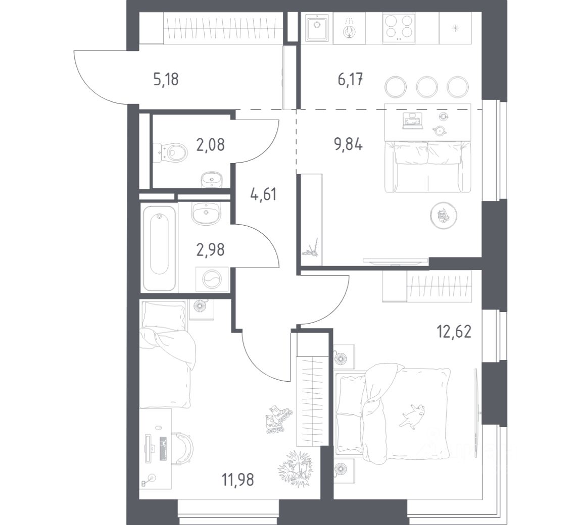 Строим кварталы для жизни с заботой о будущем. Предлагается 2-комнатная квартира комфорт-класса площадью 55,46 кв.м в корпусе 7.2 на 7-м этаже, в жилом комплексе "Богдановский Лес".
