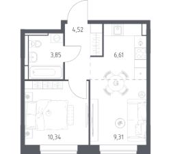 Строим кварталы для жизни с заботой о будущем. Предлагается 1-комнатная квартира комфорт-класса площадью 34,63 кв.м в корпусе 7.1 на 7-м этаже, в жилом комплексе "Богдановский Лес".