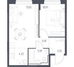Строим кварталы для жизни с заботой о будущем. Предлагается 1-комнатная квартира комфорт-класса площадью 40,79 кв.м в корпусе 10.2 на 3-м этаже, в жилом комплексе "Богдановский Лес".
