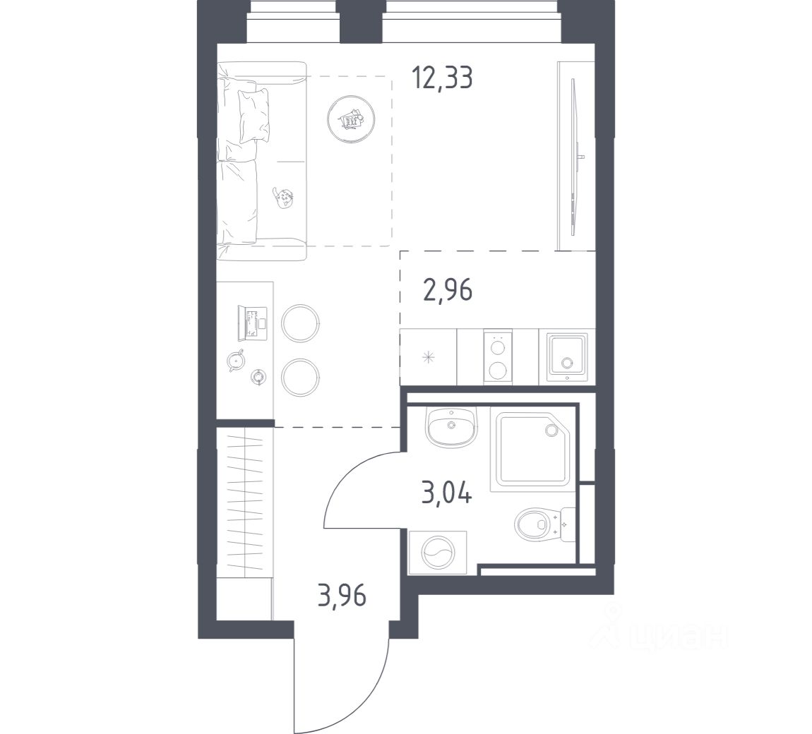 Общая площадь22,29 м²
