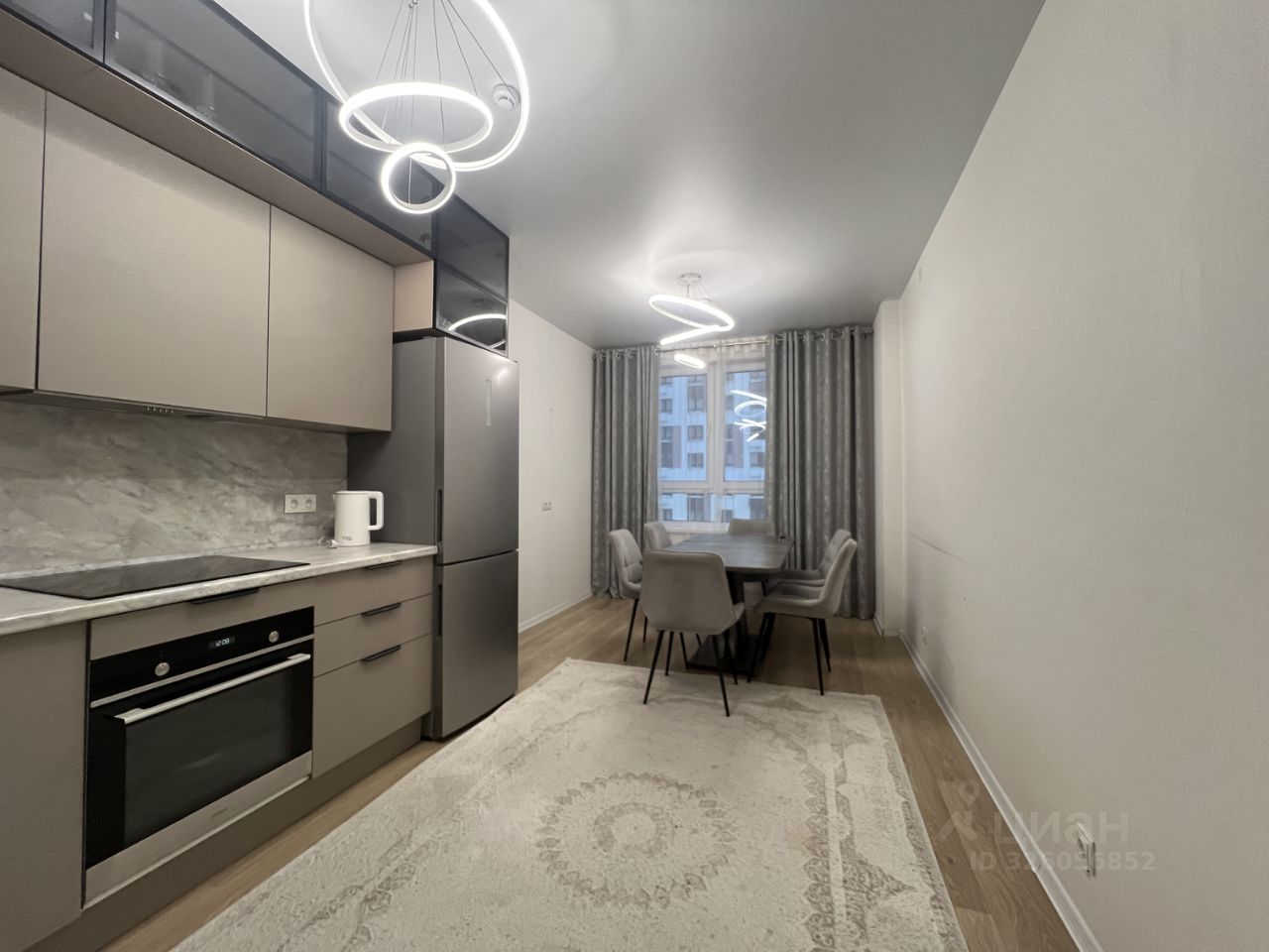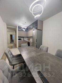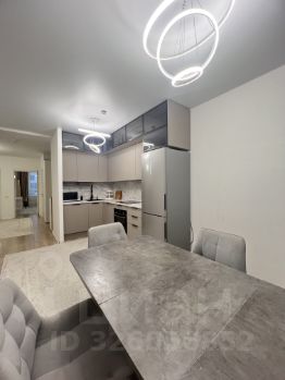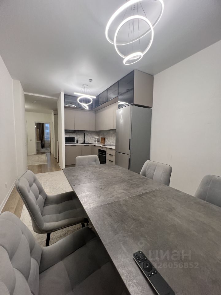 Ну и конечно, сердце нашей квартиры - просторная кухня-гостиная с шикарной кухонной зоной (где уже есть вся необходима техника) и большим обеденным столом для встреч всей семьей за обедами или ужинами.