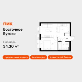 Продаётся 1-комн. квартира площадью 34,3 кв.м на 2 этаже 15 этажного дома (Корпус 47, Секция 2) проекта ПИК Восточное Бутово. Светлый просторный подъезд на уровне земли, функциональная планировка, большие окна, предчистовая отделка.