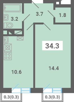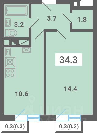 Общая площадь34,3 м²