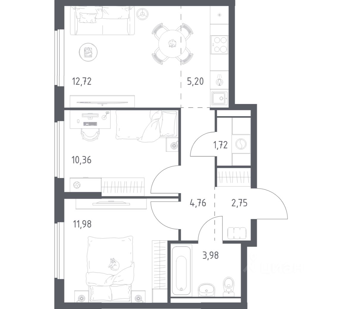 Строим кварталы для жизни с заботой о будущем. Предлагается 2-комнатная квартира комфорт-класса площадью 53,47 кв.м в корпусе 8.2 на 12-м этаже, в жилом комплексе "Горки Парк".