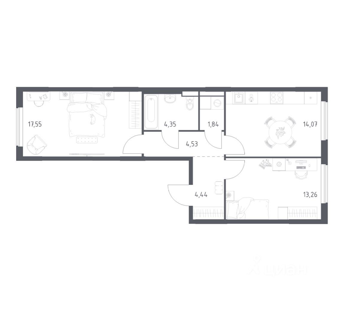 Строим кварталы для жизни с заботой о будущем. Предлагается 2-комнатная квартира комфорт-класса площадью 60,04 кв.м в корпусе 8.2 на 7-м этаже, в жилом комплексе "Горки Парк".
