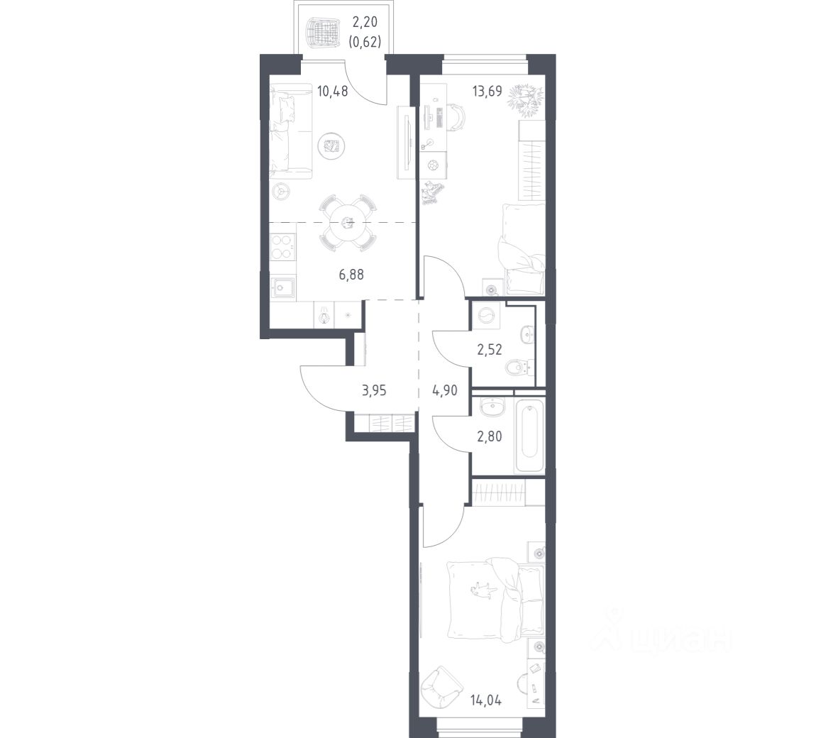 Строим кварталы для жизни с заботой о будущем. Предлагается 2-комнатная квартира комфорт-класса площадью 59,88 кв.м в корпусе 7.3 на 12-м этаже, в жилом комплексе "Богдановский Лес".