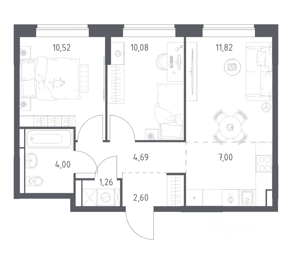 Строим кварталы для жизни с заботой о будущем. Предлагается 2-комнатная квартира комфорт-класса площадью 51,97 кв.м в корпусе 7.1 на 7-м этаже, в жилом комплексе "Богдановский Лес".