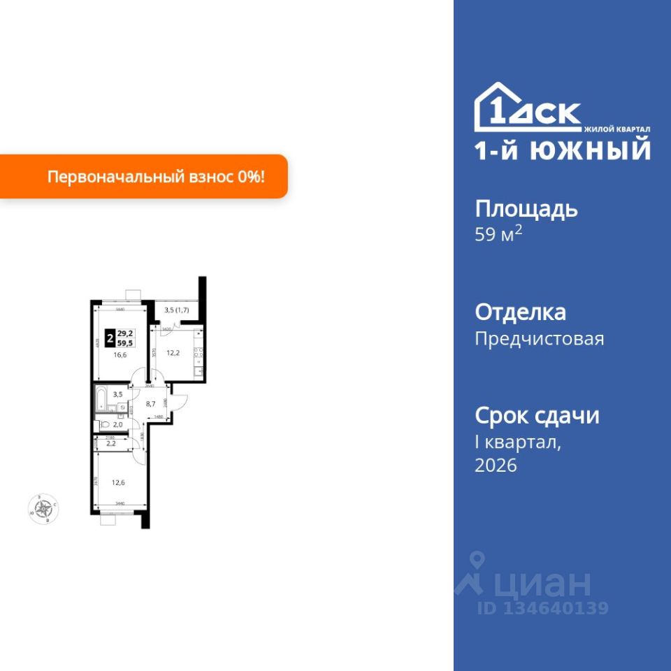 Продаётся 2-к квартира номер 762 общей площадью 59.5 кв.м. на 15-м этаже 24 этажного здания. Отделка Whitebox. Цена с учётом скидки.