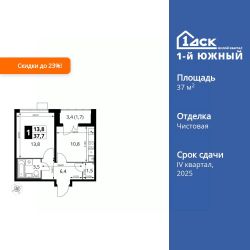 Продаётся 1-к квартира номер 378 общей площадью 37.7 кв.м. на 7-м этаже 24 этажного здания. Чистовая отделка. Цена с учётом скидки.