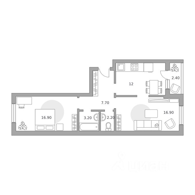 60,7 м²