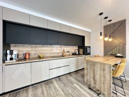 * Современный кухонный гарнитур и встроенная техника.