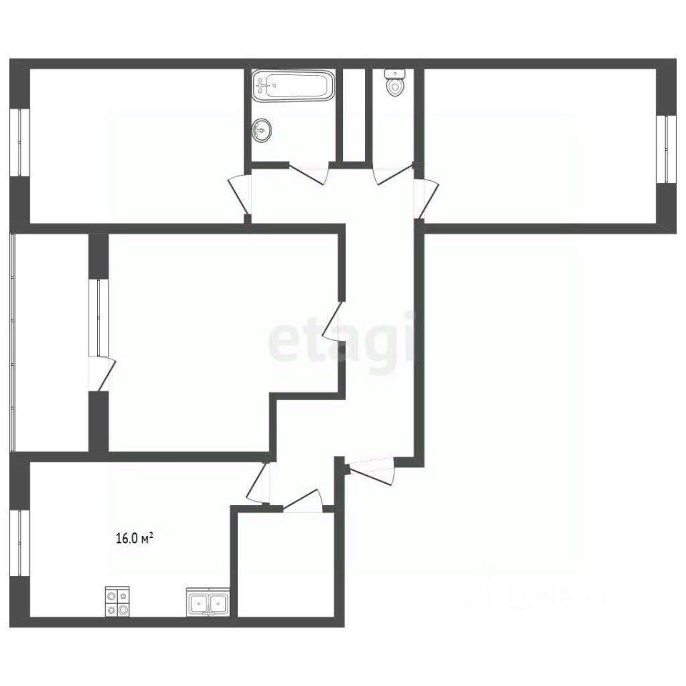 Трехкомнатная квартира площадью 75 кв. м в ЖК "Завидное" предлагает рациональную планировку распашного типа, где три изолированные комнаты обеспечивают приватность для всех членов семьи.