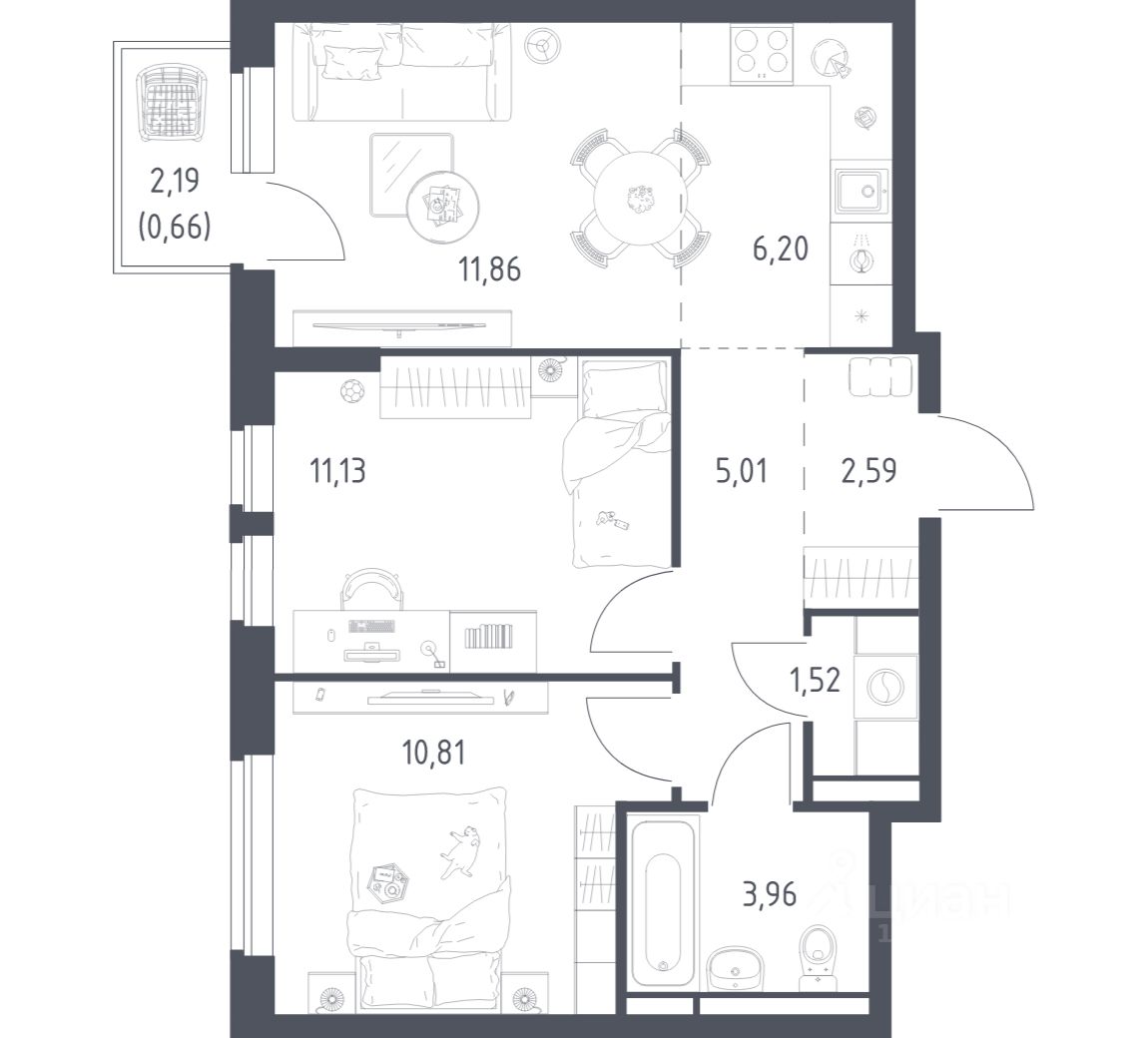 Строим кварталы для жизни с заботой о будущем. Предлагается 2-комнатная квартира комфорт-класса площадью 53,74 кв.м в корпусе 17 на 11-м этаже, в жилом комплексе "Новое Видное".