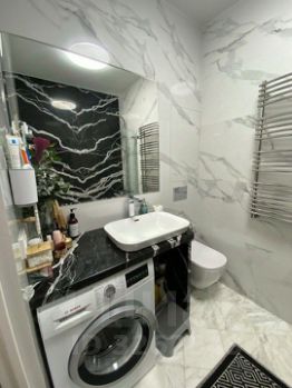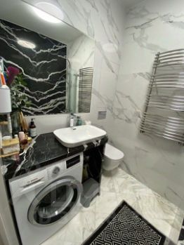 Санузел оснащен качественной сантехникой и есть электрический бойлер. Теплый пол из мраморной плиты.