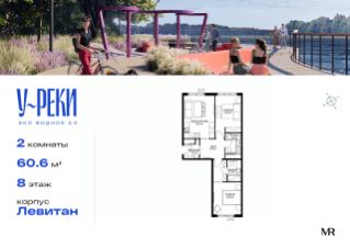 Продаётся 2-комнатная квартира общей площадью 60.60 м² без отделки в ЖК "У реки. Эко Видное 2.0" на 8-м этаже 17 этажного корпуса Левитан.