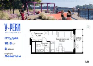 Продаётся студия общей площадью 18.80 м² с предчистовой отделкой в ЖК "У реки. Эко Видное 2.0" на 8-м этаже 17 этажного корпуса Левитан.