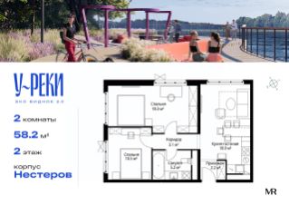 Продаётся 2-комнатная квартира общей площадью 58.20 м² с предчистовой отделкой в ЖК "У реки. Эко Видное 2.0" на 2-м этаже корпуса Нестеров.