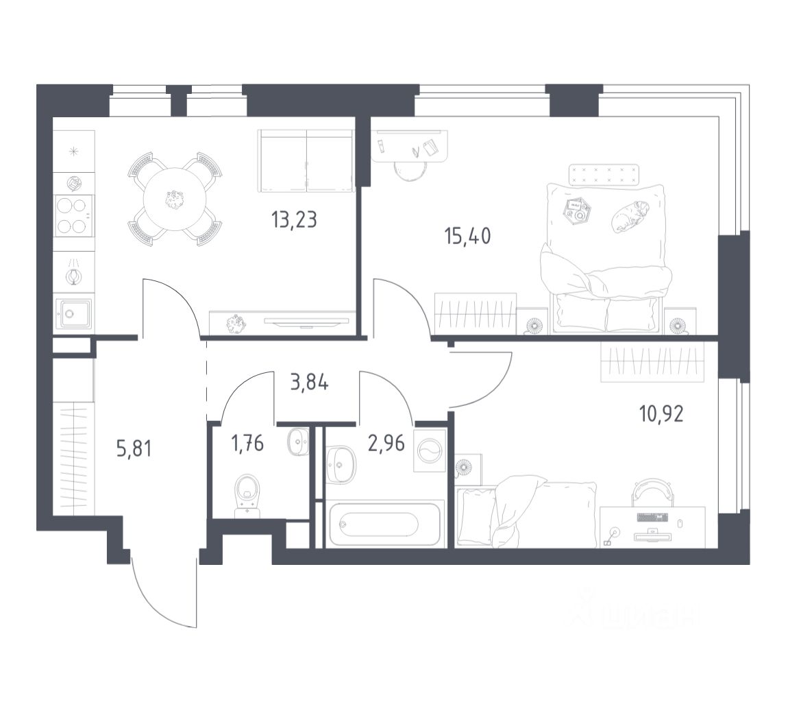 Строим кварталы для жизни с заботой о будущем. Предлагается 2-комнатная квартира комфорт-класса площадью 53,92 кв.м в корпусе 17 на 10-м этаже, в жилом комплексе "Новое Видное".