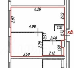 кухня гостиная 16.9 кв.м., комната 10 кв.м.