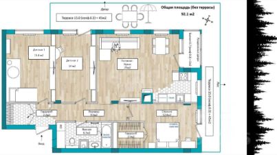 В квартире (92,1 кв/м) создана уютная атмосфера загородной жизни. Оборудованная терраса (45 кв/м) с мебелью, ландшафтным озеленением и тремя выходами из помещений. Панорамные окна. Большая кухня-гостиная (29 кв/м), три изолированных комнаты (15- 14- 12 кв/м), зимний сад, две гардеробных и просторный санузел. Сделан дизайнерский ремонт, всё в отличном состоянии и готово к заезду. Высокий первый этаж (с улицы не заглянешь), идеально для семей с малютками и пожилых людей.