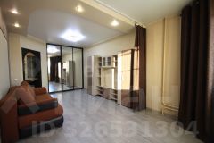 Современный ремонт с использованием практичных материалов, все коммуникации, сантехническая разводка, фурнитура, счётчики, модули электрической проводки выполнены по евростандарту, несколько вариантов освещения. В комнате организовано зонирование декоративным потолком и шторами, установлен кондиционер