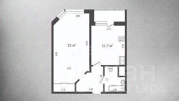 Улучшенная планировка квартиры общей площадью 43.6 м кв. с большой кухней 11.7 и просторной жилой комнатой 22. Совмещенный санузел с ванной и эргономичная входная группа. Застеклённая лоджия объединена с кухней и добавляет дополнительное пространство для хранения, обустройства и отдыха
