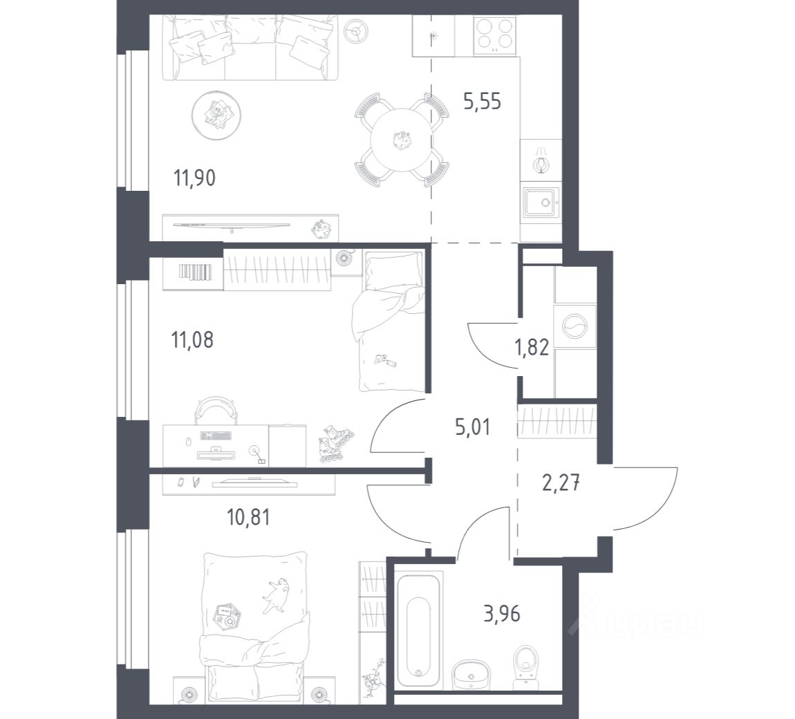 А если не хочется тратить время на ремонт, можно выбрать опцию — с отделкой. Перед тем как отдать ключи, застройщик установит натяжные потолки, поклеит обои под покраску, положит ламинат светлых тонов, а в санузлах — керамическую плитку и керамогранит.