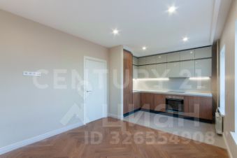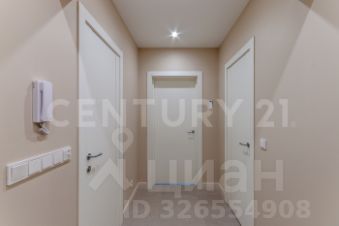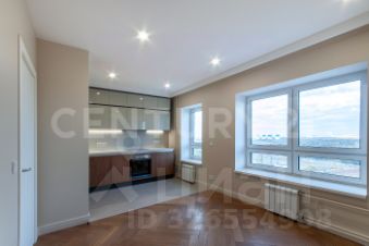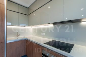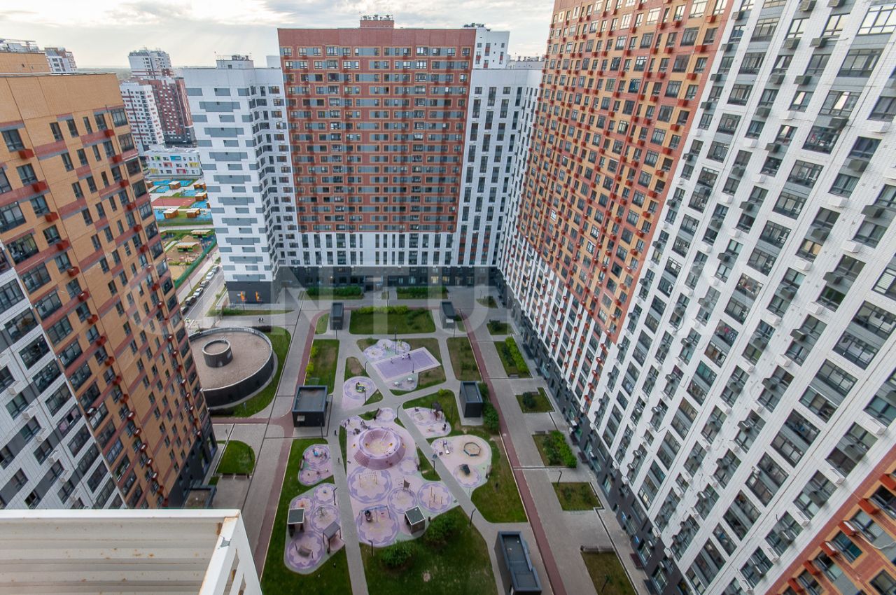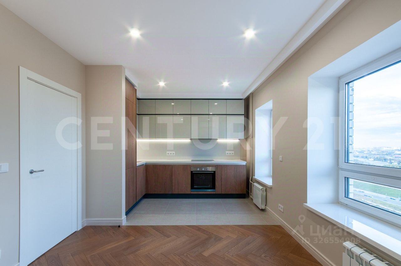Квартира расположена на 22 этаже 25-этажного корпуса. Функциональная планировка распашонка включает в себя кухню-гостиную 17,5 м2 с зоной отдыха и обеденной группой.