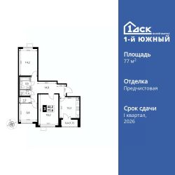 Продаётся 3-к квартира номер 189 общей площадью 77.9 кв.м. на 25-м этаже 25 этажного здания. Отделка Whitebox. Цена с учётом скидки.
