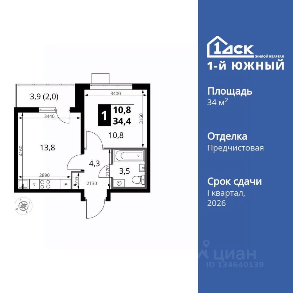 Продаётся 1-к квартира номер 318 общей площадью 34.3 кв.м. на 22-м этаже 25 этажного здания. Отделка Whitebox. Цена с учётом скидки.