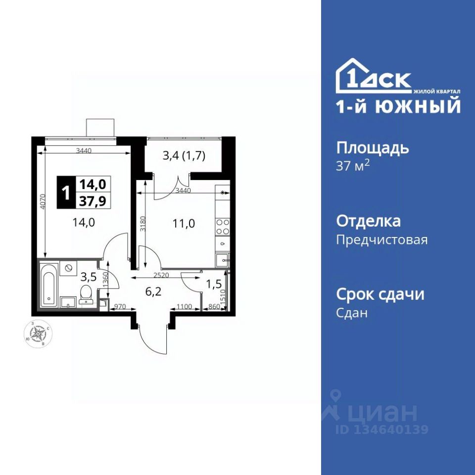 Продаётся 1-к квартира номер 226 общей площадью 37.9 кв.м. на 24-м этаже 24 этажного здания. Отделка Whitebox. Цена с учётом скидки.