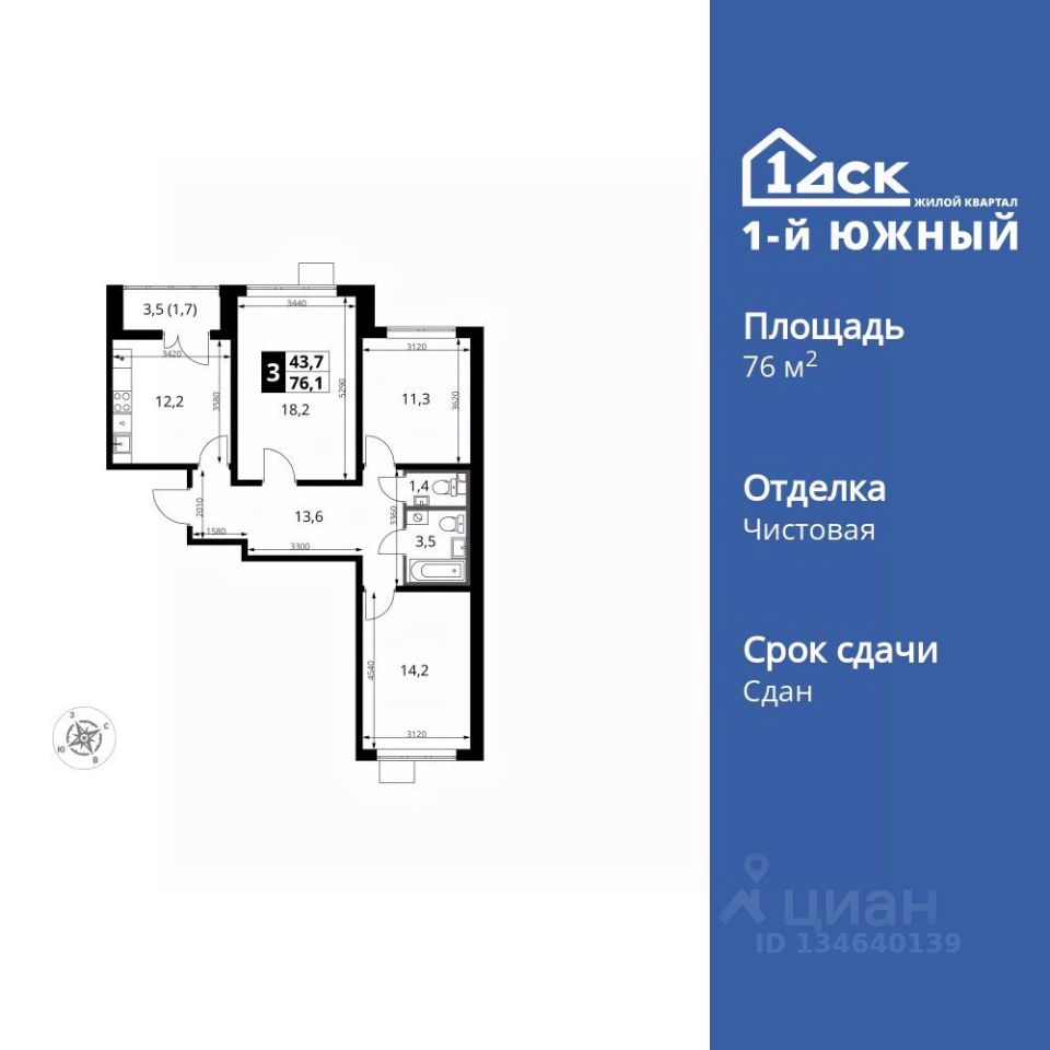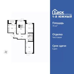 Продаётся 3-к квартира номер 307 общей площадью 76.1 кв.м. на 21-м этаже 25 этажного здания. Чистовая отделка. Цена с учётом скидки.