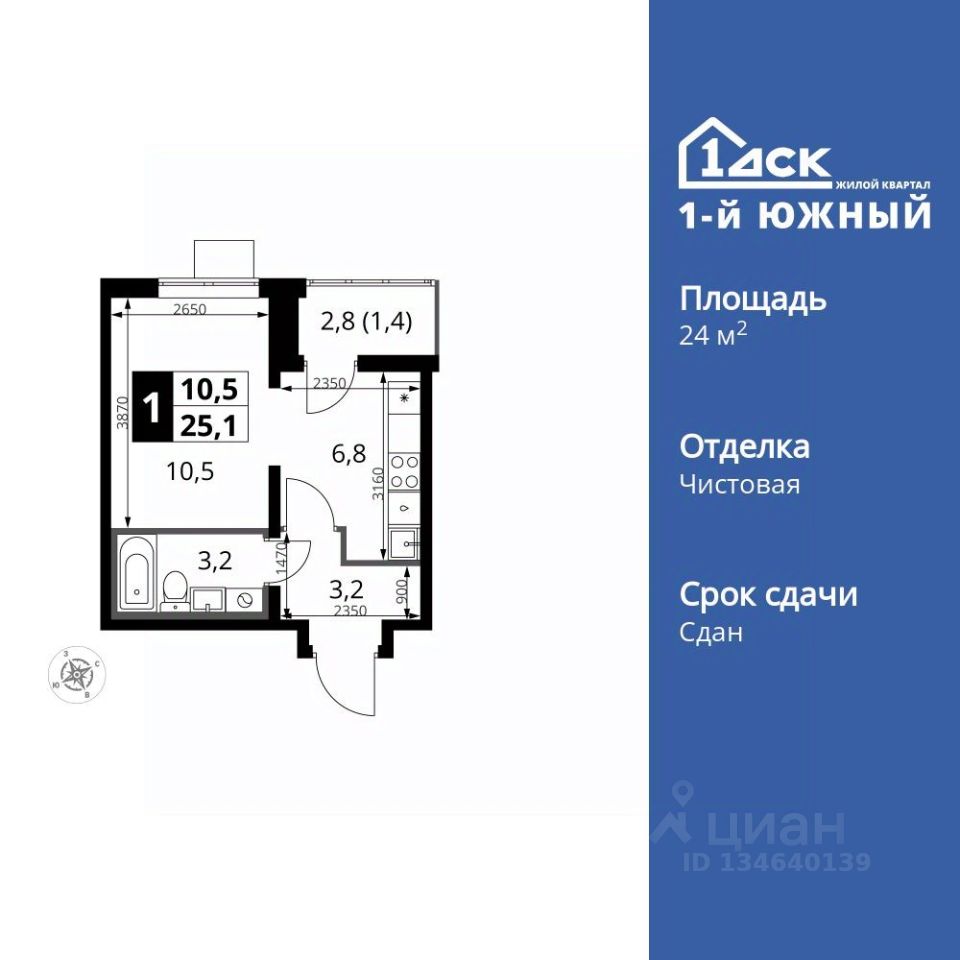 Продаётся квартира-студия номер 369 общей площадью 24.9 кв.м. на 8-м этаже 25 этажного здания. Чистовая отделка. Цена с учётом скидки.