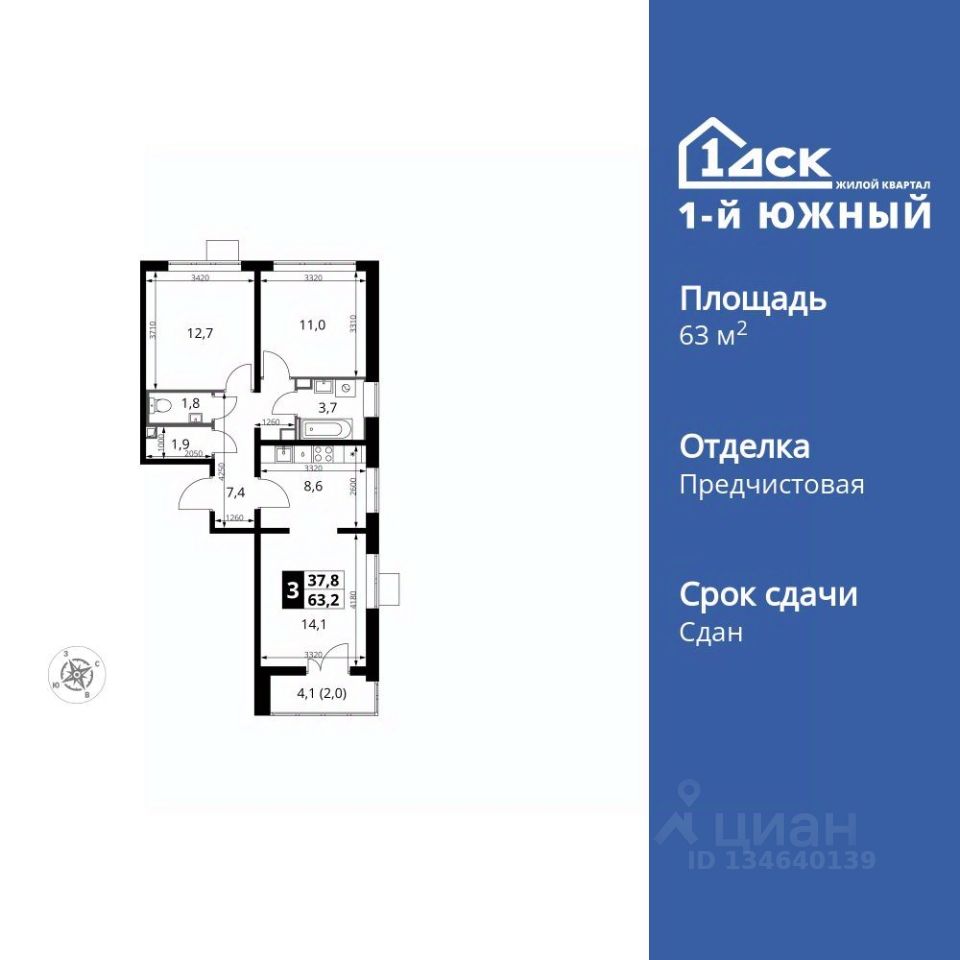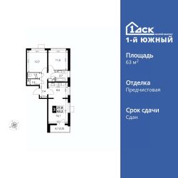 Продаётся 3-к квартира номер 731 общей площадью 63.1 кв.м. на 19-м этаже 25 этажного здания. Отделка Whitebox. Цена с учётом скидки.