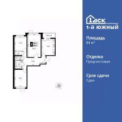 Продаётся 3-к квартира номер 257 общей площадью 84.1 кв.м. на 12-м этаже 25 этажного здания. Отделка Whitebox. Цена с учётом скидки.