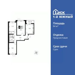 Продаётся 3-к квартира номер 311 общей площадью 84.1 кв.м. на 21-м этаже 25 этажного здания. Отделка Whitebox. Цена с учётом скидки.