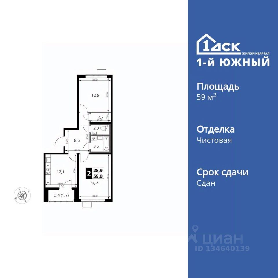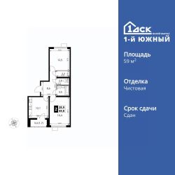 Продаётся 2-к квартира номер 555 общей площадью 59 кв.м. на 9-м этаже 24 этажного здания. Чистовая отделка. Цена с учётом скидки.