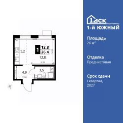 Продаётся квартира-студия номер 410 общей площадью 26.4 кв.м. на 21-м этаже 24 этажного здания. Отделка Whitebox.