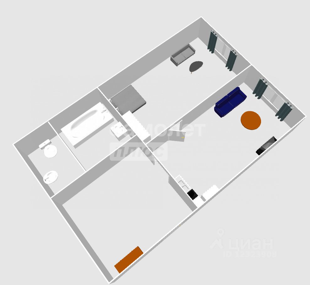 Oбщая площaдь кваpтиpы составляет 42,2 кв. м.