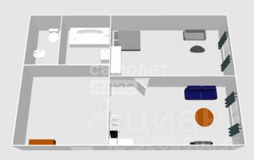 Комната 1 -15.5 кв.м. , кухня -гостиная 17 кв. м., с/у раздельный