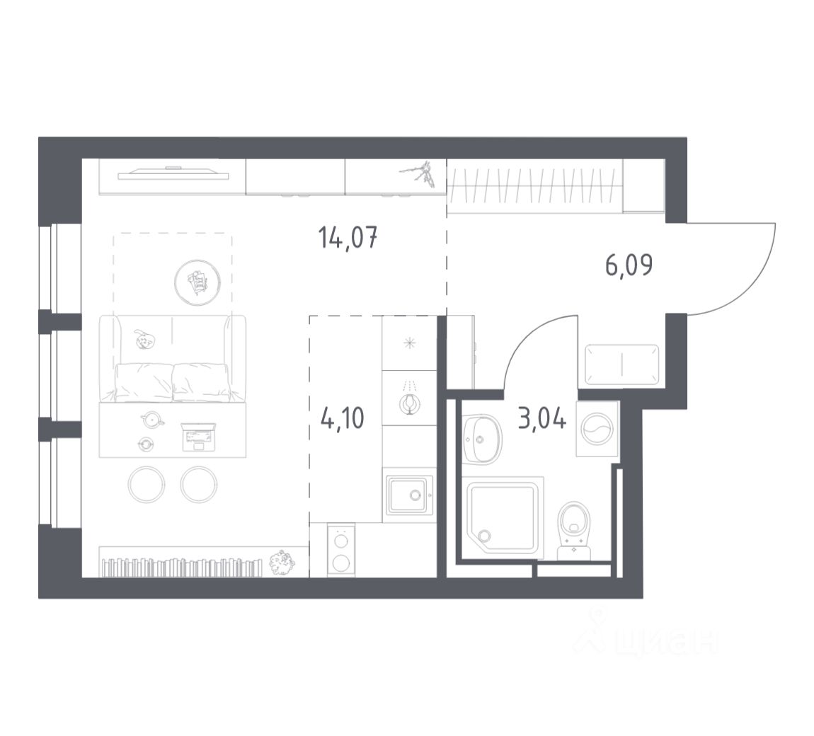 Строим кварталы для жизни с заботой о будущем. Предлагается студия комфорт-класса площадью 27,3 кв.м в корпусе 7.2 на 7-м этаже, в жилом комплексе "Богдановский Лес".